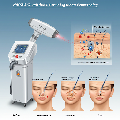 Hello, I'm Dr. Rachna Singh at Dermanation Clinic in Noida. For those seeking to address uneven skin tone and pigmentation concerns, the Nd:YAG Q-switched laser offers a sophisticated solution. This non-invasive treatment precisely targets areas of excess pigment, such as melanin, using short bursts of high-energy light. This process gently breaks down the pigment into smaller particles that your body naturally clears away, revealing a brighter and more uniform complexion.